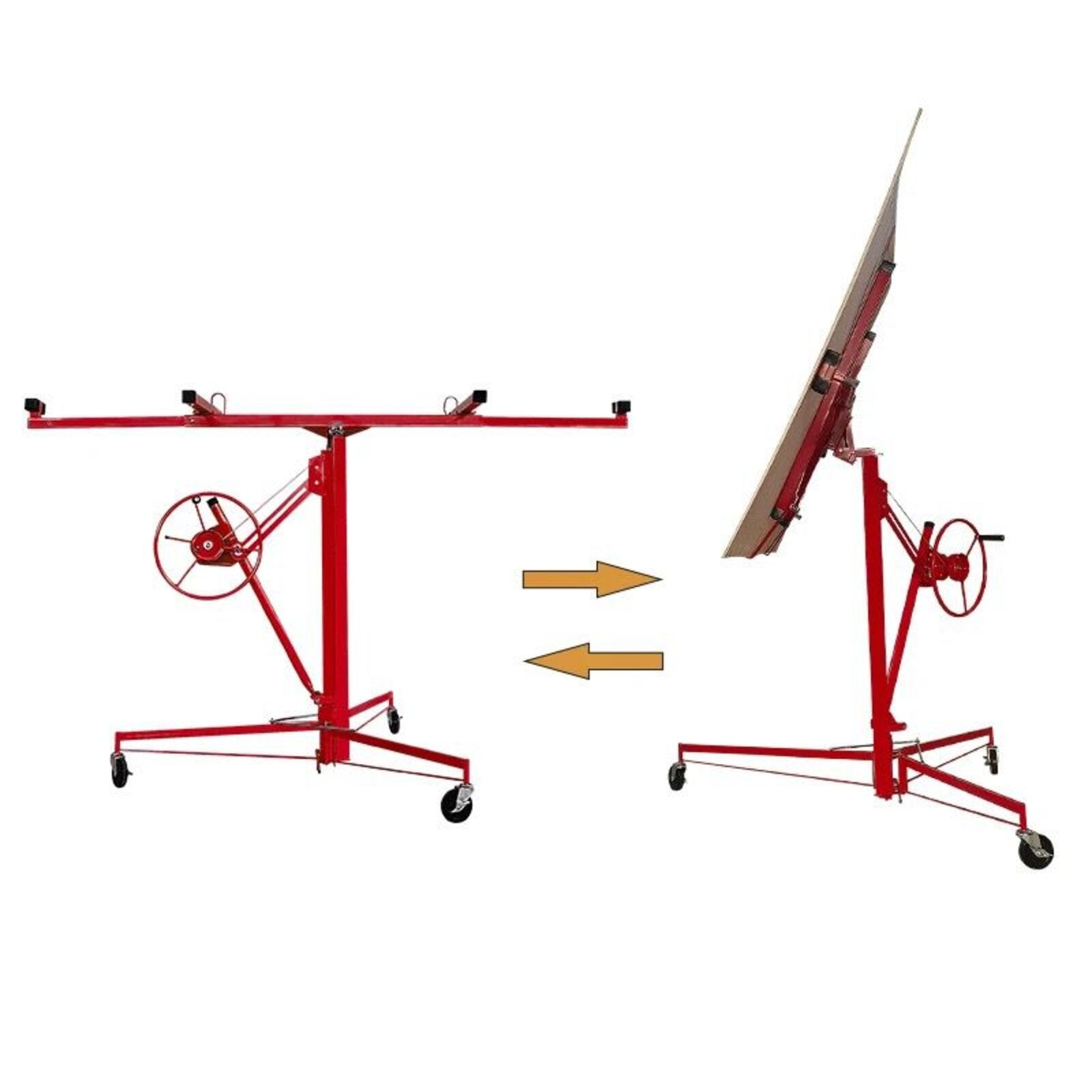 Zahvaljujući visini koja se može prilagoditi od 1,4 do 3,5 metara, ova dizalica omogućuje jednostavno i sigurno postavljanje knauf ploča, ploča od iverice, drvenih ploča i metalnih ploča do težine od 68 kg.