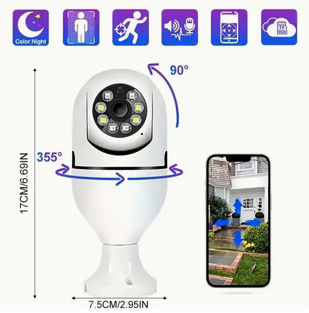 WiFi panoramska kamera E27 je idealno rješenje za sigurnost vašeg doma ili poslovnog prostora. S montažom na standardno E27 grlo, ova kamera kombinuje praktičnost, modernu tehnologiju i sigurnost u jednom uređaju 💡📷.